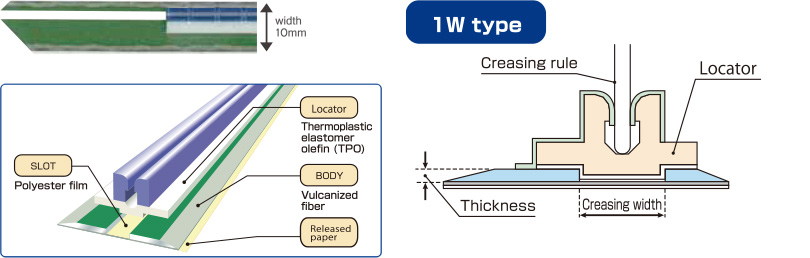 - 1W type (Off-center with side taper, 2-3pt creasing rule )